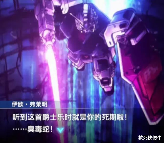 在《雷霆宙域战线》原作中,联邦主角伊欧·弗莱明对吉翁主角达里尔·洛伦兹的经典嘲讽台词是“义足野郎”。达里尔因战争失去四肢,并自愿接受义肢改造以驾驶高机动性扎古,这句台词直接针对他的身体残疾,带有极强的侮辱性。